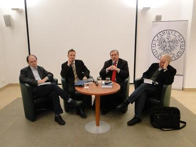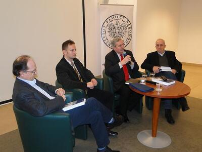 W spotkaniu udział wzięli: dr Konrad Rokicki – autor publikacji, prof. Jerzy Eisler, prof. Andrzej Friszke i prof. Dariusz Jarosz.