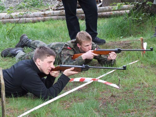 Strzela drużyna z Zespołu Szkół Zawodowych i Ogólnokształcących nr 5 im. rotmistrza Witolda Pileckiego w Katowicach.