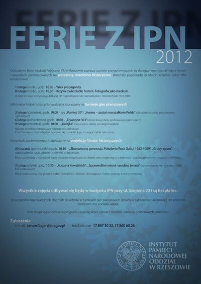 Wszystkie zajęcia odbywać się będą w budynku IPN przy ul. Szopena 23 i są bezpłatne.
