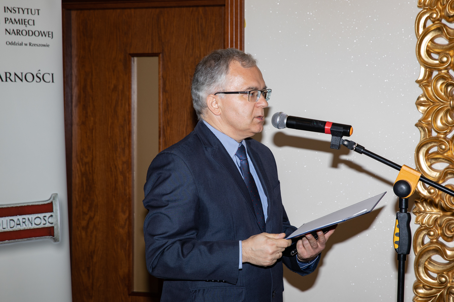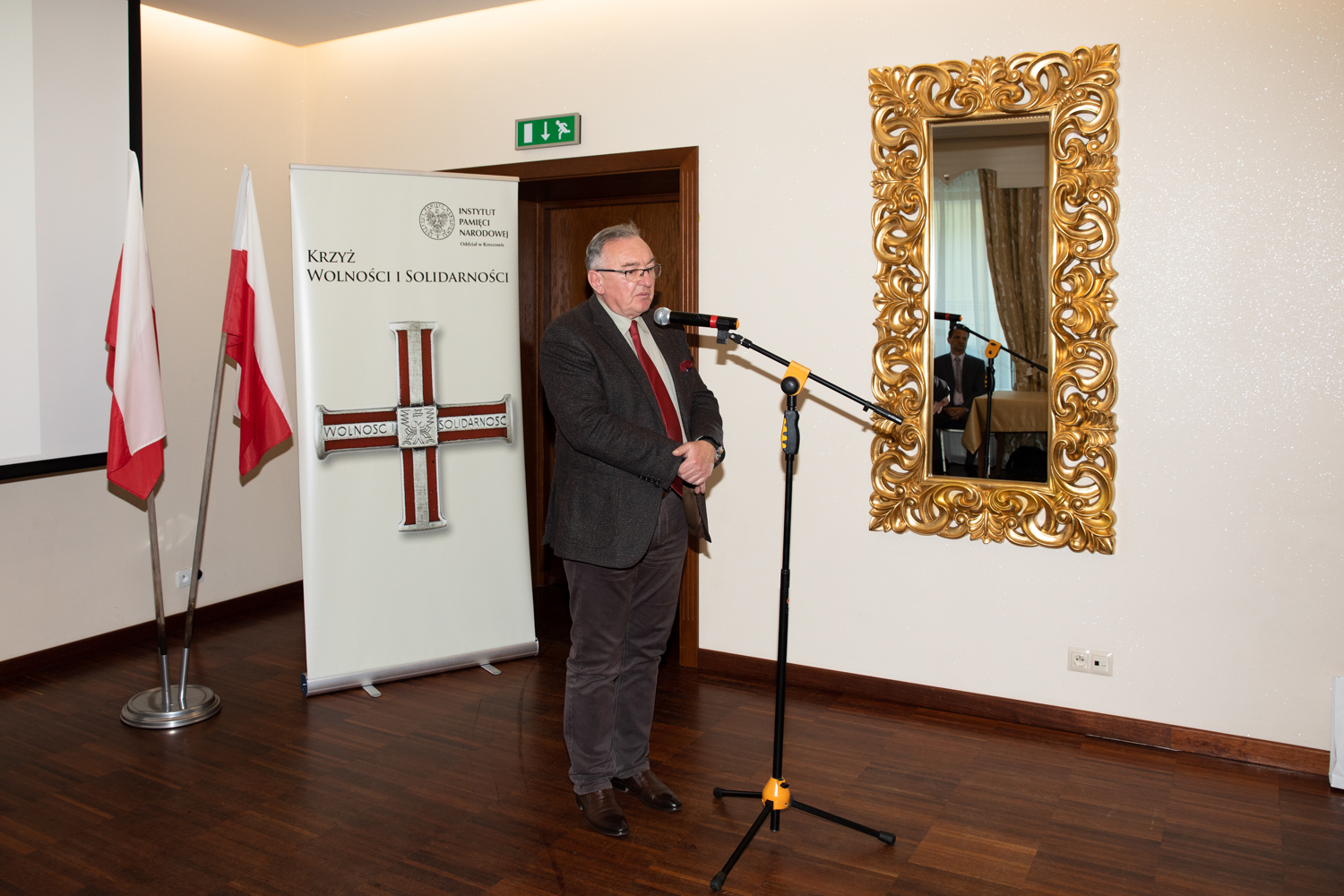 „W latach 70. i 80. ubiegłego stulecia nie było walki z bronią, ale odważne demonstrowanie swoich poglądów. Demonstrowanie niezgody na to co działo się wtedy w Polsce. I znaleźli się tacy odważni; oni są tutaj z nami na tej sali. Trzeba było długo czekać na ich odznaczenia, ale Rzeczpospolita pamięta. Jesteście Państwo pokoleniem, które dobrze zapisało się dla Polski. Proszę świadczyć swoją działalnością wśród młodych i odpowiadać na zaproszenia IPN, bo młodzież potrzebuje pozytywnych wzorców, aby podążać Państwa drogami, jeśli przyjdzie taka potrzeba” – mówił wiceprezes IPN.