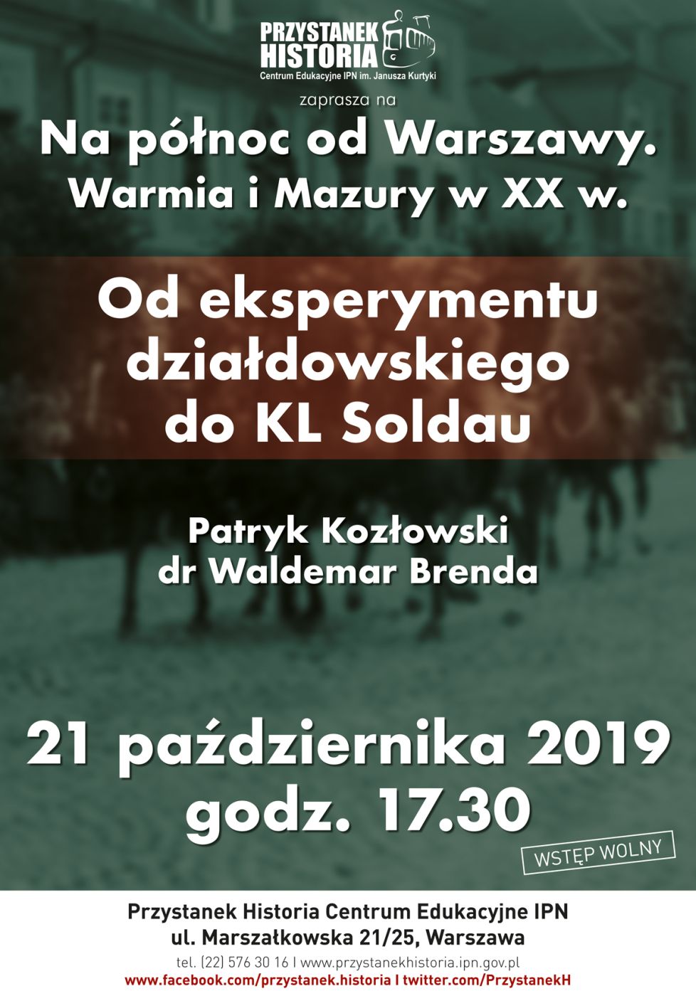 Kolejne spotkanie z cyklu „Na północ od Warszawy. Warmia i Mazury w XX w.” poświęcone było niemieckiemu obozowi KL Soldau w Działdowie. Gościem dr. Waldemara Brendy był Patryk Kozłowski, dyrektor Muzeum Pogranicza w Działdowie.
