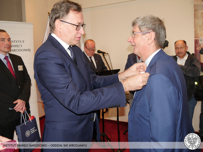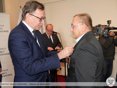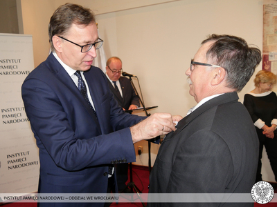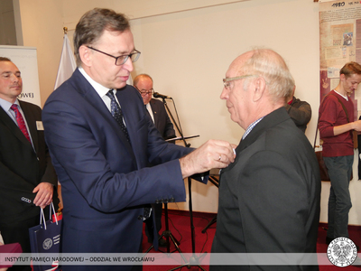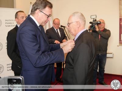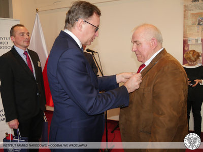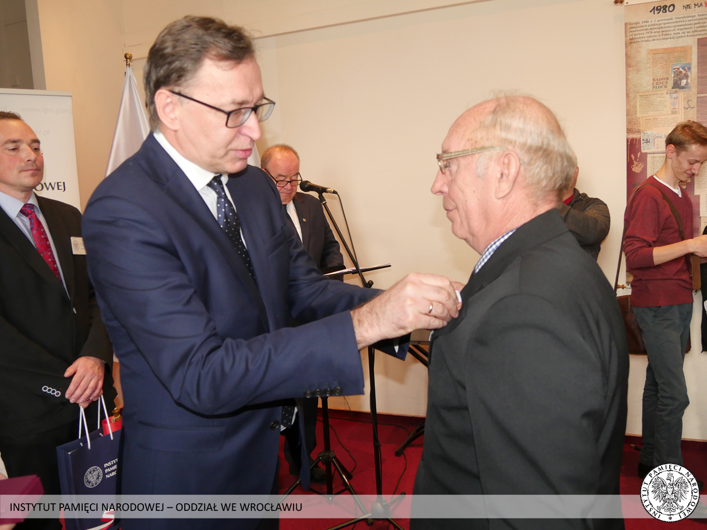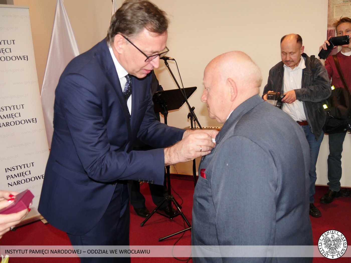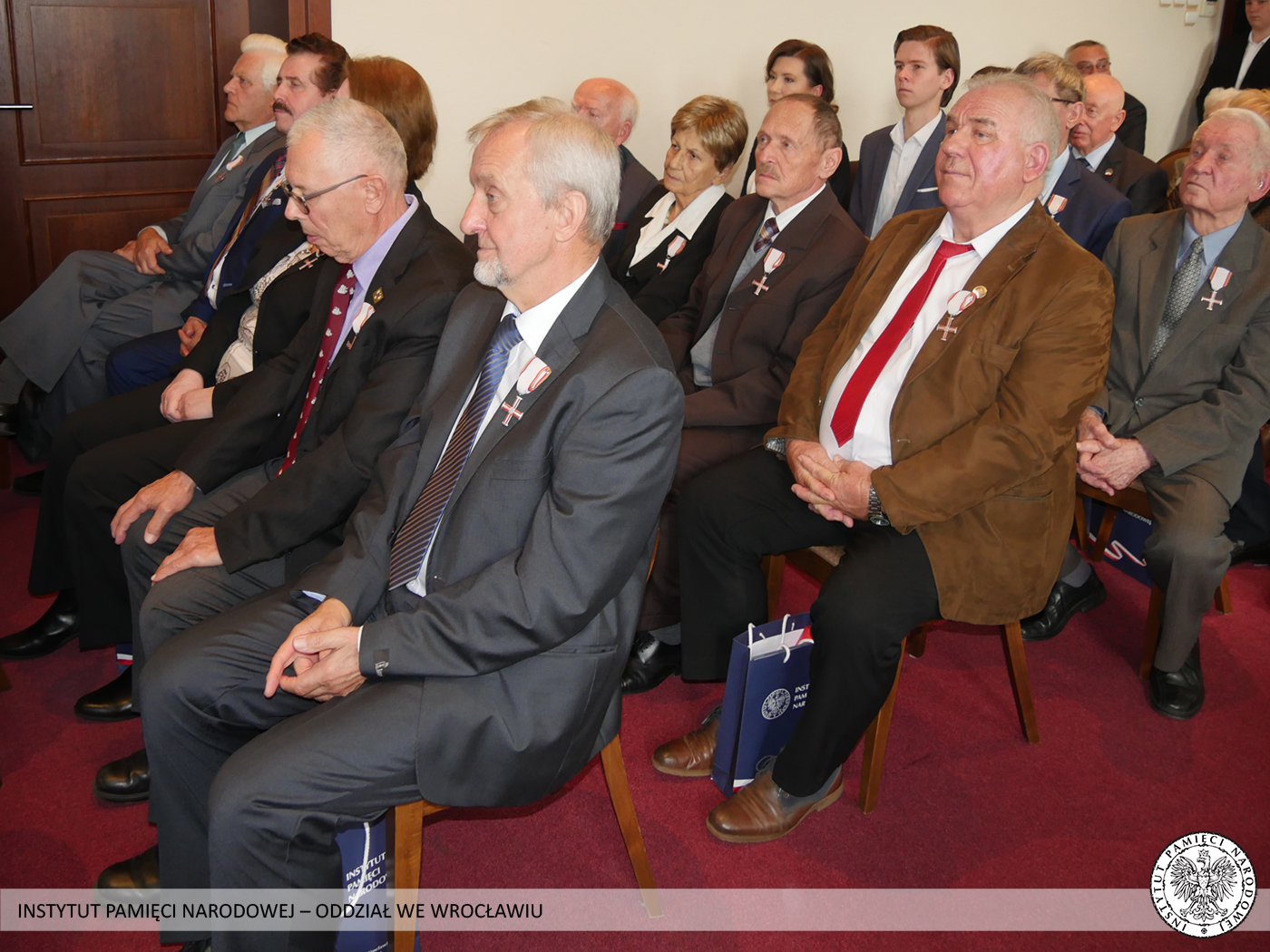 Krzyż Wolności i Solidarności to odznaczenie przyznawane przez Prezydenta RP na wniosek Prezesa Instytutu Pamięci Narodowej za działalność podziemną na rzecz niepodległego Państwa Polskiego. Odznaczeni nie wahali się narażać własnego zdrowia i życia, abyśmy mogli dzisiaj żyć i pracować w wolnej i demokratycznej Polsce. Tych skromnych bohaterów sprzed kilku dekad Prezes Instytutu Pamięci Narodowej dr Jarosław Szarek udekorował Krzyżami Wolności i Solidarności. Całą uroczystość poprowadził dyrektor Oddziału IPN we Wrocławiu dr Andrzej Drogoń.