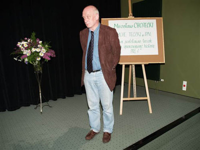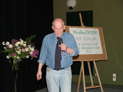 Mirosław Chojecki z właściwą sobie swadą opowiadał o „bojach z PRL-em”: organizowaniu i działaniu KOR, tworzeniu podziemnego wydawnictwa NOWa, pracach edytorsko-wydawniczych, konspiracyjnych drukarniach i magazynach, metodach kolportażu. Rzeczywiste działania skonfrontował z zawartością swojej tzw. teczki, obrazującej stopień rozpracowania i metody inwigilacji podziemia. Krytycznie ocenił wnikliwość SB w kontrolowaniu jego poczynań, wprost anegdotycznie opowiadając o wielu mniejszych i większych akcjach. Młodzież dobrze przyjmowała ten rodzaj opowieści o historii opozycji antykomunistycznej, zadawała też drobiazgowe pytania o sposób drukowania prohibitów, zdobywanie papieru itp.