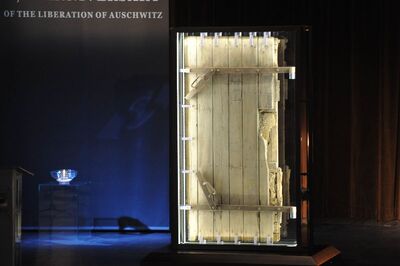 Podczas tegorocznych uroczystości rocznicowych zaprezentowano unikatowy relikt – jedyne zachowane drzwi komory gazowej pochodzące z jednego z krematoriów, wysadzonych w powietrze przez esesmanów pod koniec ostatecznej ewakuacji obozu.