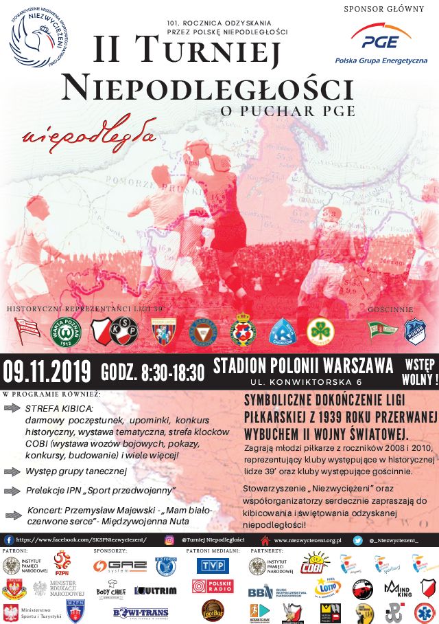 Kontynuując ideę propagowania postaw patriotycznych wśród dzieci i młodzieży poprzez sport, Stowarzyszenie „Niezwyciężeni” wraz z Biurem Edukacji Narodowej IPN zaplanowało na ten rok kolejną edycję piłkarskiego turnieju, z okazji 101. rocznicy odzyskania przez Polskę niepodległości.