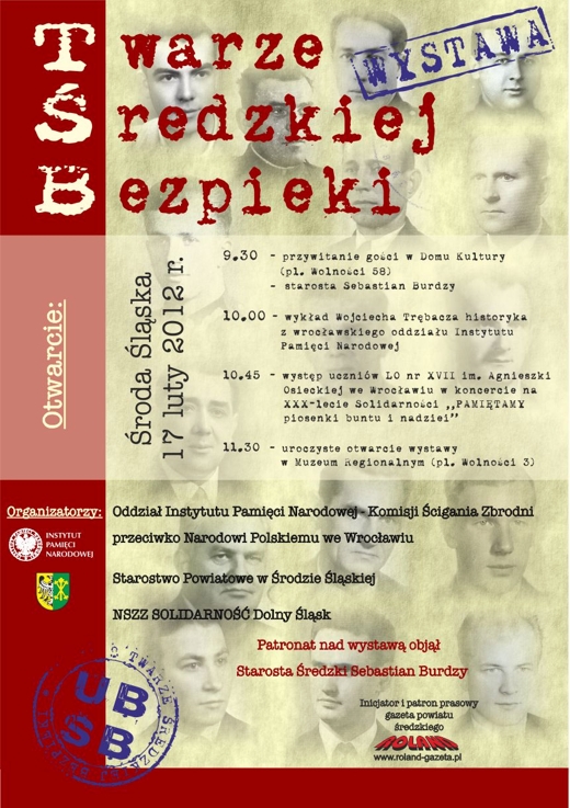 17 lutego 2012 r. w Domu Kultury w Środzie Śląskiej (pl.Wolności 58) odbyło się spotkanie edukacyjne, w ramach którego otwarta została wystawa „Twarze średzkiej bezpieki”.