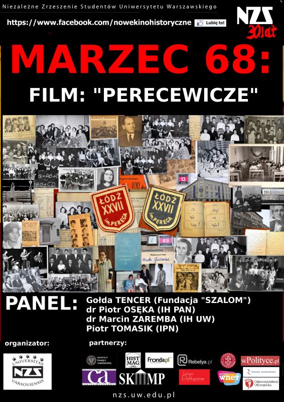 Niezależne Zrzeszenie Studentów Uniwersytetu Warszawskiego i Sekcja Judaistyczna SKNH są organizatorami projekcji filmu „Perecowicze”, połączonej z dyskusją na temat wydarzeń Marca '68. Spotkanie odbyło się 6 marca 2012 o godz. 20.00 w budynku starego BUWu. W panelu dyskusyjnym udział wzięli: Gołda Tencer (Fundacja Shalom) Piotr Osęka (IH PAN) Marcin Zaremba (IH UW) Paweł Tomasik (IPN).