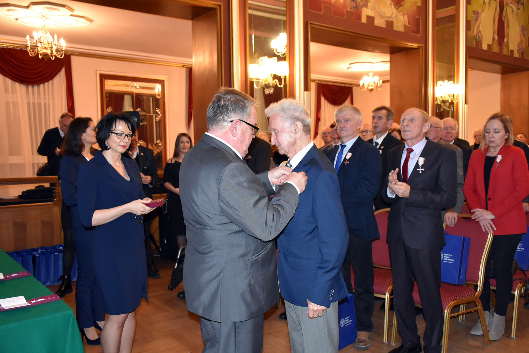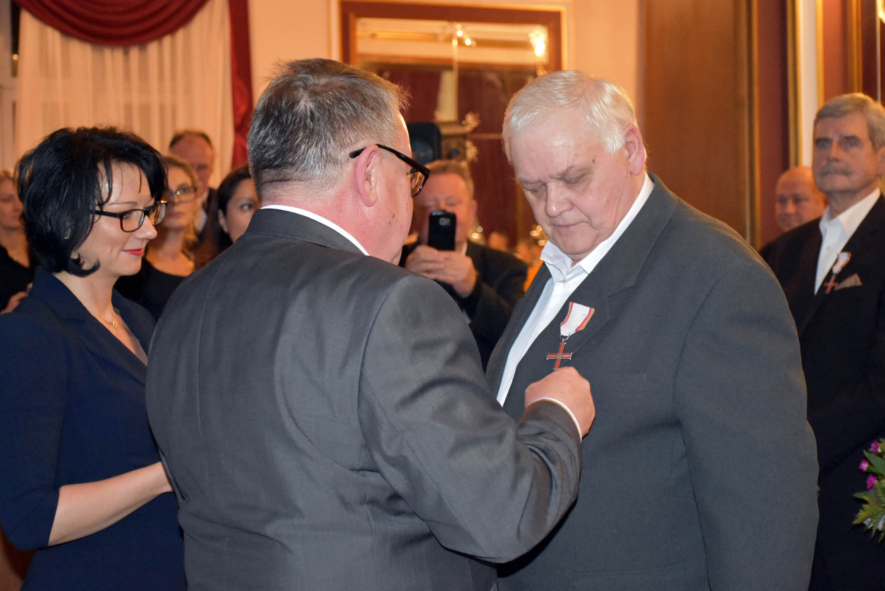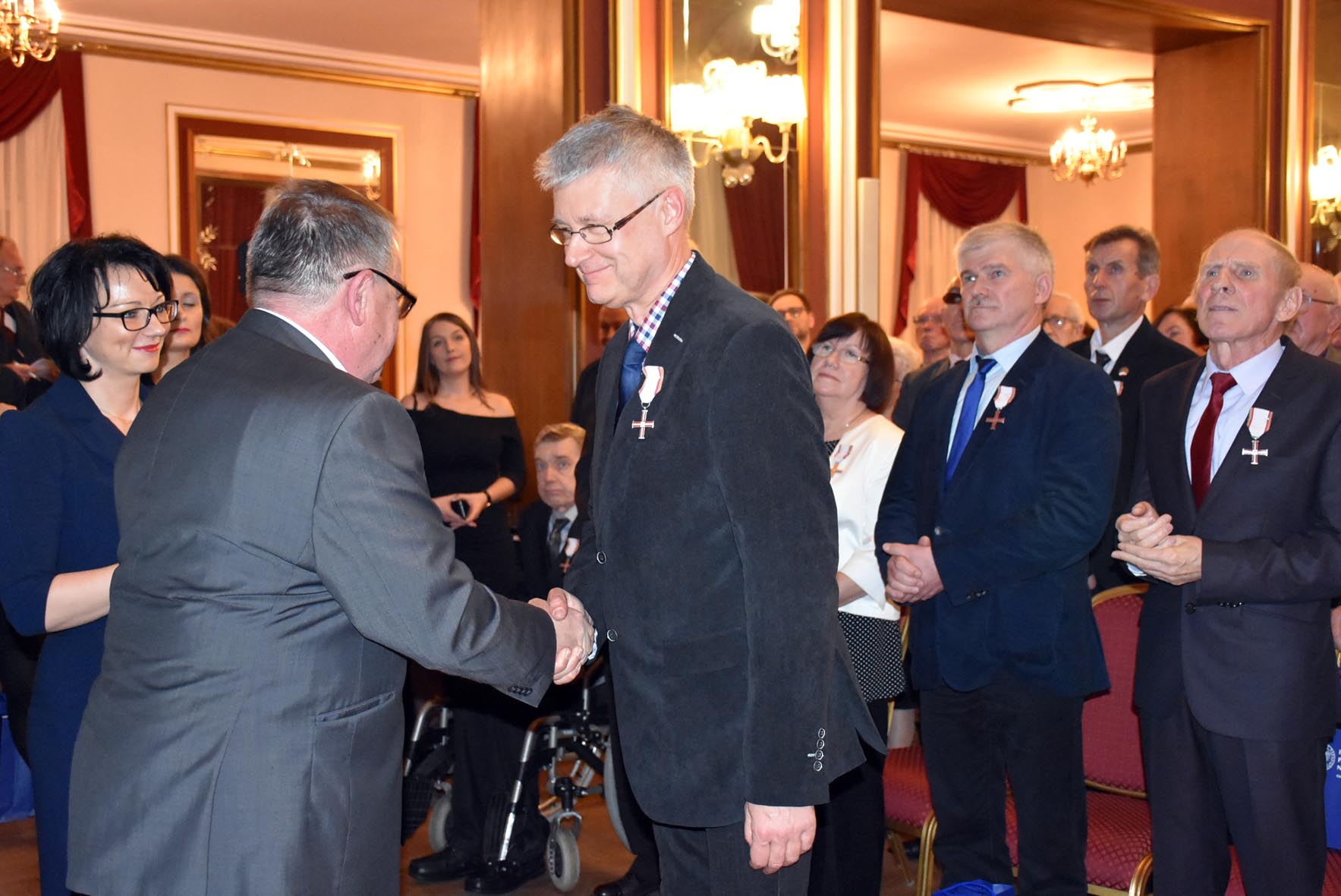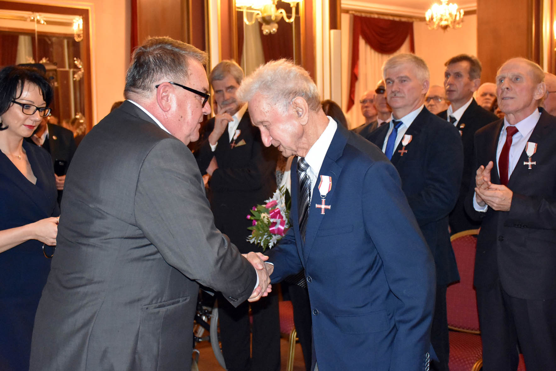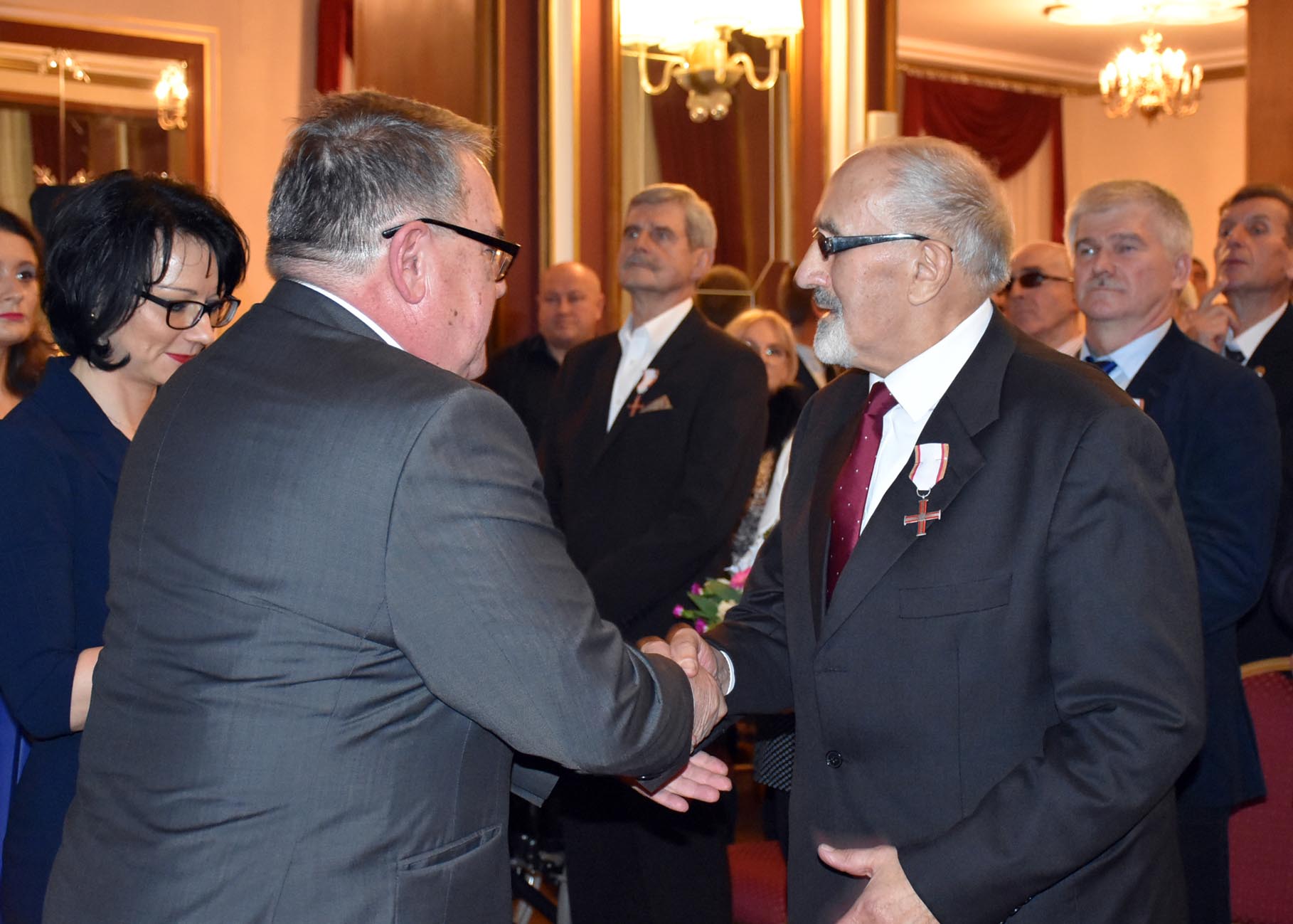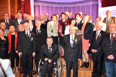 Następnie w imieniu prezydenta Rzeczypospolitej Andrzeja Dudy odznaczenia wręczył 62 działaczom opozycji demokratycznej z lat 1956–1989 zastępca prezesa Instytutu Pamięci Narodowej Jan Baster.