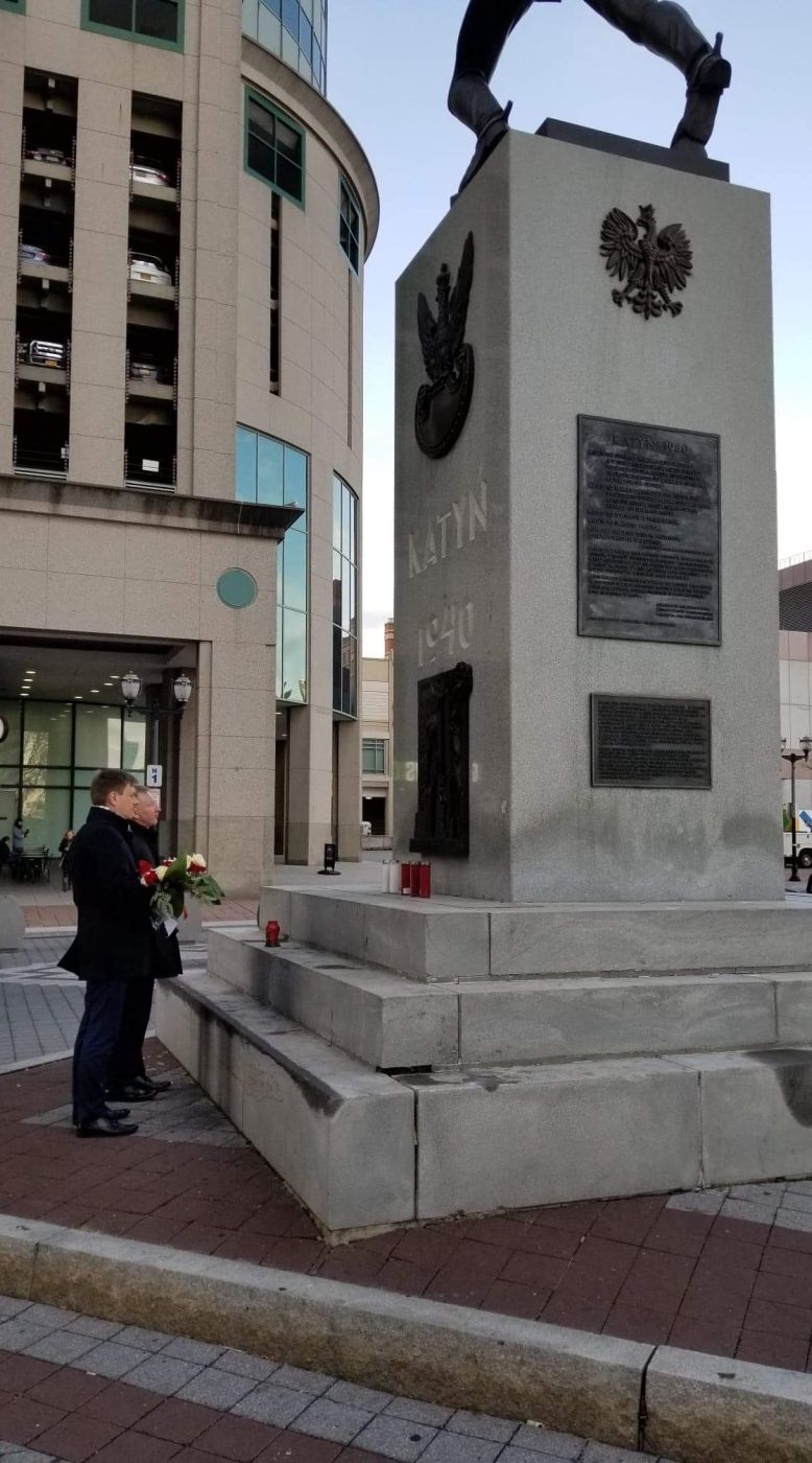 Złożenie kwiatów pod Pomnikiem Katyńskim w Jersey City – 20 listopada 2019. Fot. Grzegorz Tymiński