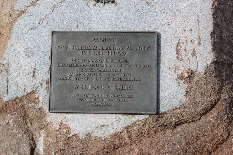 W dniu 5 marca 2012 r. delegacja pracowników Oddziału IPN w Białymstoku złożyła kwiaty pod tablicą upamiętniającą śmierć ostatniego partyzanta w Polsce północno-wschodniej ppor. Stanisława Marchewki ps. Ryba. Ppor. Marchewka zginął 3 marca 1957 r. z rąk milicjantów w bunkrze w Jeziorku koło Łomży. Tablica została ufundowana w 2007 r., w 50. rocznicę Jego śmierci, z inicjatywy Oddziału IPN w Białymstoku oraz lokalnej społeczności.