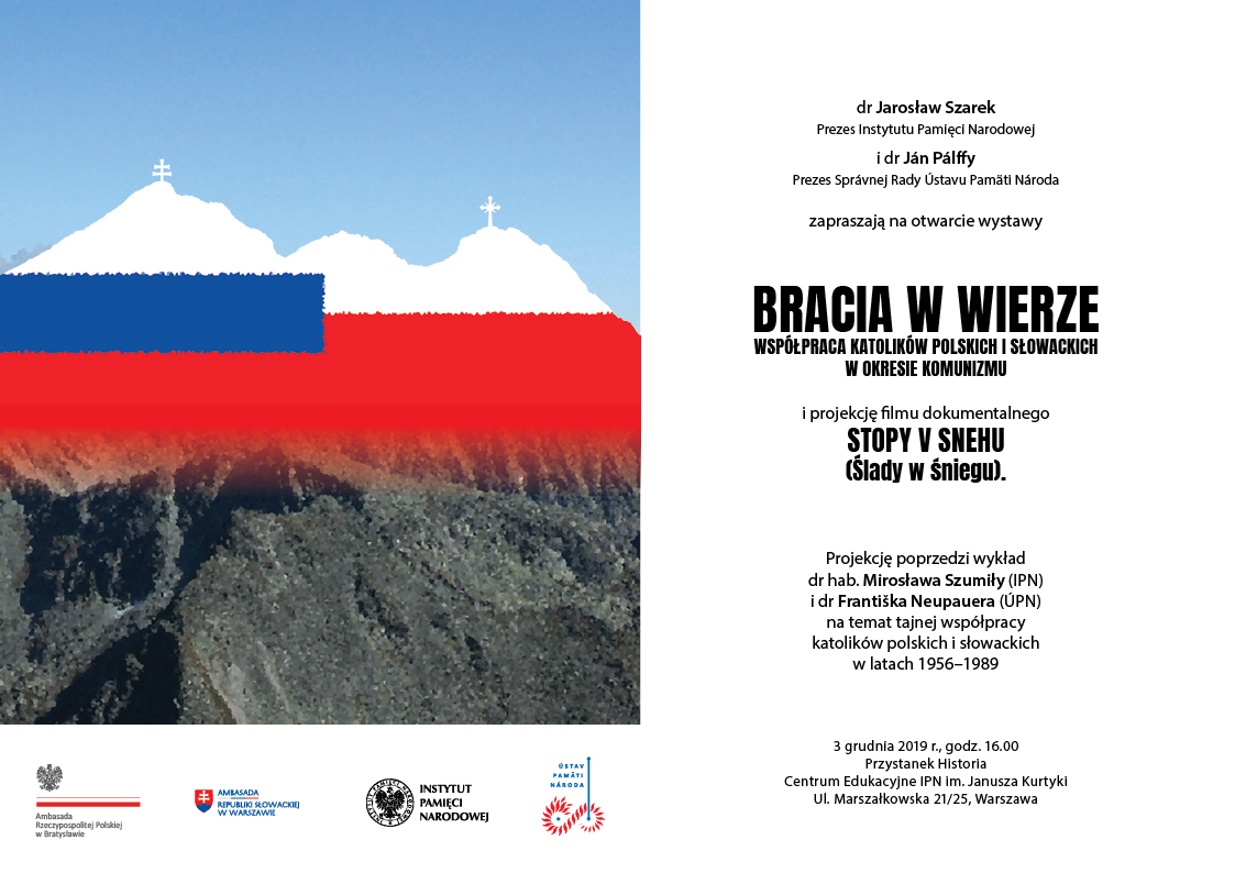 Wystawa przedstawia mało znane fakty dotyczące tajnej współpracy polskich i słowackich katolików (duchownych i świeckich) w okresie rządów komunistycznych w obu krajach. Prześladowany Kościół katolicki w Czechosłowacji znalazł się w jeszcze trudniejszym położeniu, niż Kościół w PRL. Katolicy z Polski udzielali swoim słowackim braciom wielorakiej pomocy, przede wszystkim poprzez przerzut przez granicę zakazanej literatury religijnej oraz tajne święcenia słowackich księży w naszym kraju. Ponadto Słowacy przybywali do Polski na pielgrzymki do znanych sanktuariów (Częstochowy i Kalwarii Zebrzydowskiej), na spotkania z Ojcem Świętym Janem Pawłem II oraz Ruchu Światło-Życie.