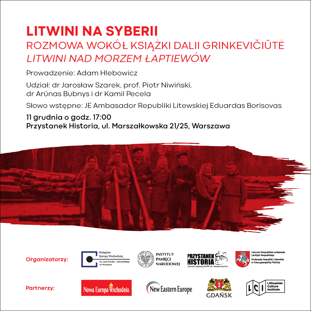 11 grudnia 2019 w Centrum Edukacynym IPN im. Janusza Kurtyki „Przystanek Historia” w Warszawie odbyła się dyskusja wokół książki Dalii Grinkevičiūtė Litwini nad Morzem Łaptiewów, wydanej przez Kolegium Europy Wschodniej.