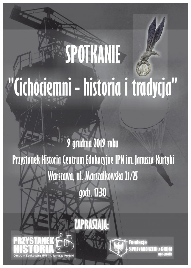 W Centrum Edukacyjnym IPN im. Janusza Kurtyki Przystanek Historia (ul. Marszałkowska 21/25) w Warszawie odbyło się spotkanie „Cichociemni – historia i tradycja”. Podczas wydarzenia można było poznać historię cichociemnych spadochroniarzy Armii Krajowej w relacji naocznego świadka, historię Jednostki Wojskowej GROM i przejęcia tradycji Cichociemnych, a także posłuchać o edukacyjno-patriotycznej działalności Fundacji Sprzymierzeni z GROM.