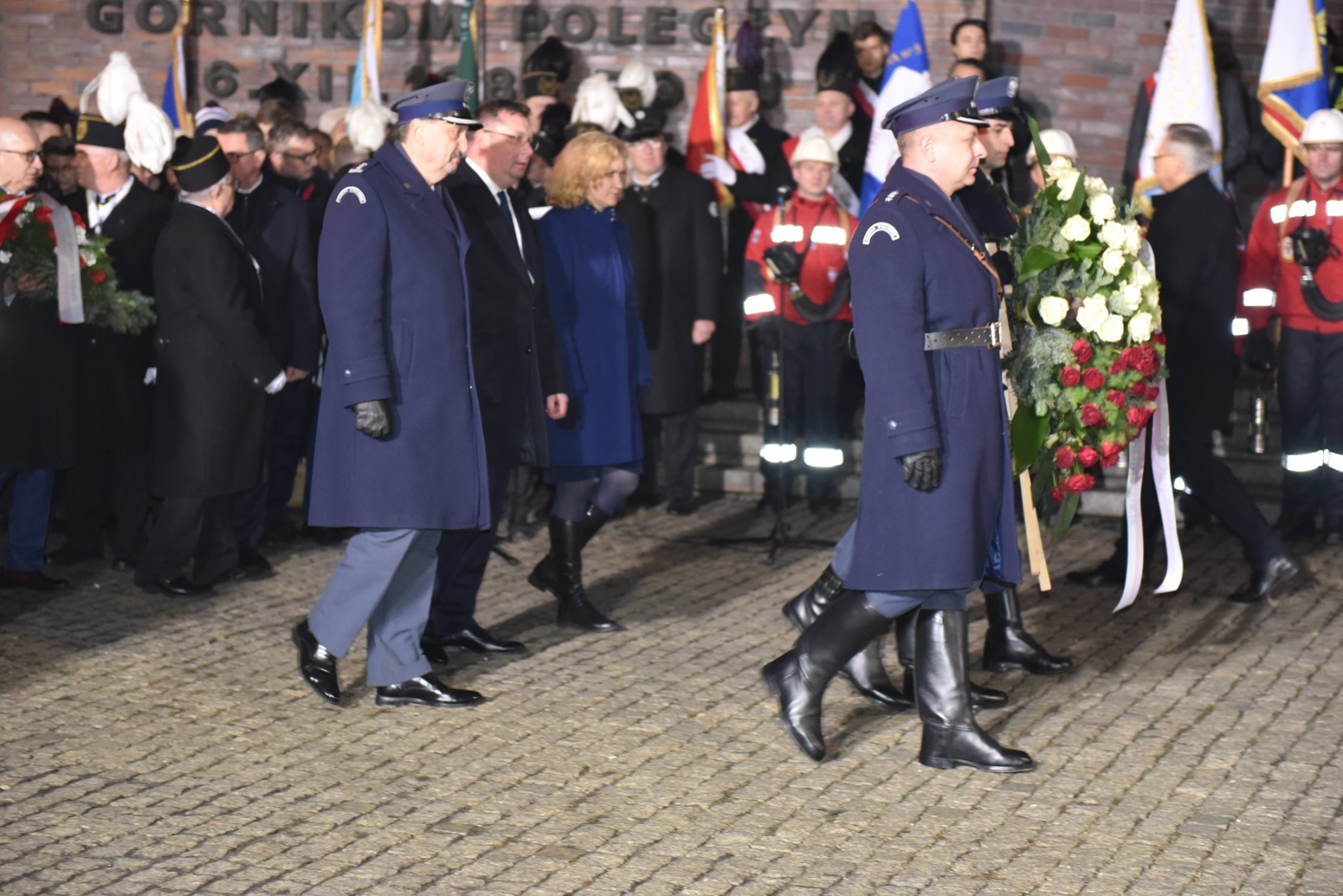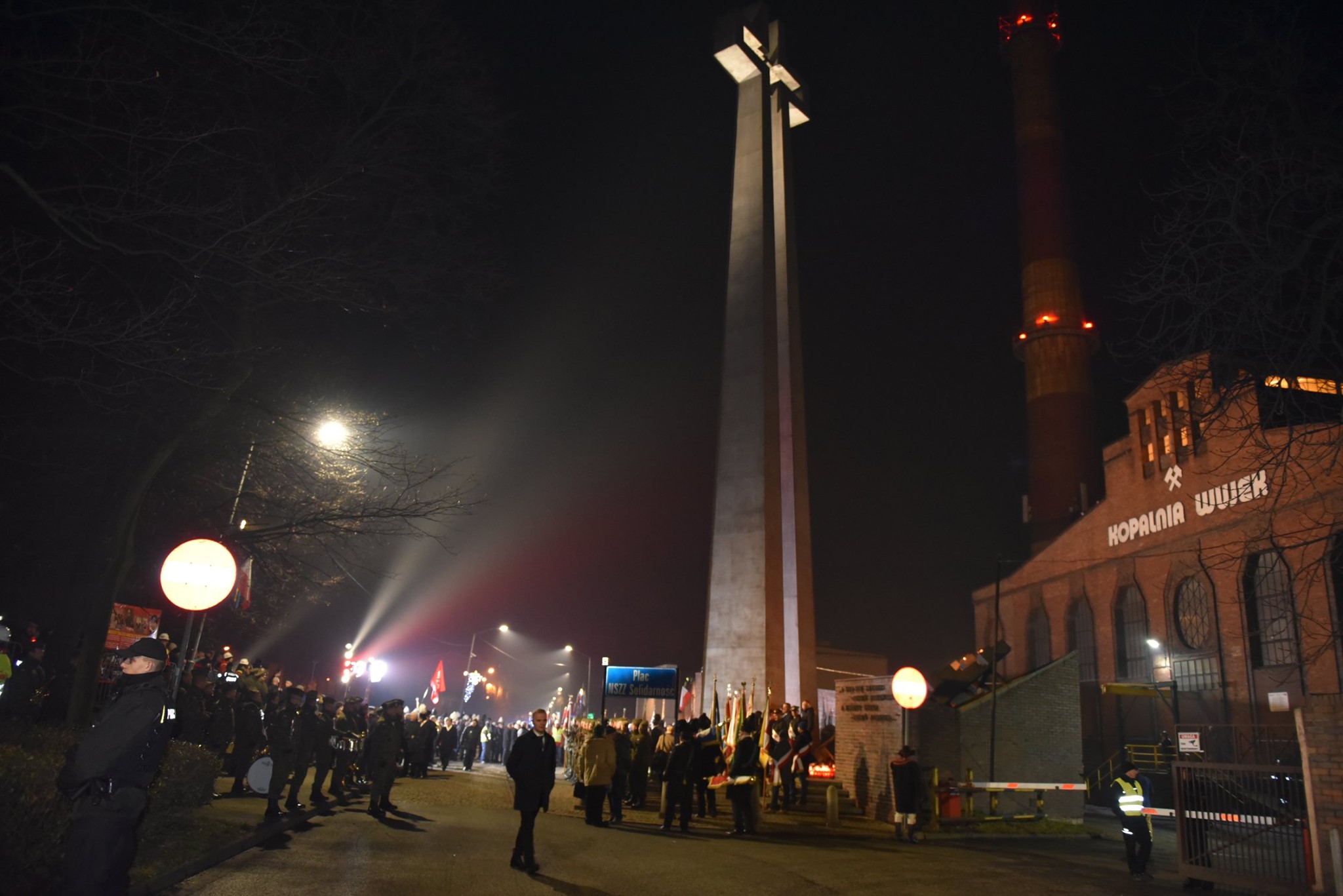 Po południu została odprawiona msza święta w kościele pw. Podwyższenia Krzyża Świętego. Następnie uczestnicy uroczystości udali się pod Krzyż-Pomnik Górników przy Kopalni „Wujek” (plac NSZZ Solidarność). Tutaj odczytany został Apel Pamięci, po czym nastąpiła ceremonia składania wieńców i kwiatów. W uroczystości wzięli udział: dr Andrzej Sznajder, dyrektor Oddziału IPN w Katowicach oraz Ryszard Mozgol, naczelnik Oddziałowego Biura Edukacji Narodowej IPN w Katowicach. W wieczornych uroczystościach uczestniczył m.in. Mateusz Morawiecki, Prezes Rady Ministrów. W swoim przemówieniu podkreślił bohaterstwo strajkujących górników. – Naprzeciw czołgów stanęli górnicy uzbrojeni w kilofy, pręty i łańcuchy. Uzbrojeni w swoją odwagę, uzbrojeni w swoje męstwo i pragnienie walki o lepsze jutro, o wolną Polskę – powiedział premier M. Morawiecki.