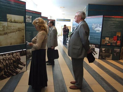 12 września 2006 r. wArchiwum Państwowym w Katowicach miało miejsce uroczyste otwarcie wystawy pt.„»Z największą brutalnością...« Zbrodnie Wehrmachtu w Polsce, wrzesień –październik 1939 r.” przygotowanej przez Biuro Edukacji Publicznej IPN iNiemiecki Instytut Historyczny w Warszawie. Podczas uroczystości zabrali głos: dyrektor Archiwum w Katowicach dr Piotr Greiner, dyrektor Instytutu PamięciNarodowej w Katowicach Andrzej Sikora, oraz ks. prałat Jerzy Pawlik. Licznie zgromadzeni goście wysłuchali z uwagą prelekcji poświęconej tematowi wojnytotalnej w 1939 roku, wygłoszonej przez współautora wystawy, pracownika BEP IPNdr. Pawła Kosińskiego.