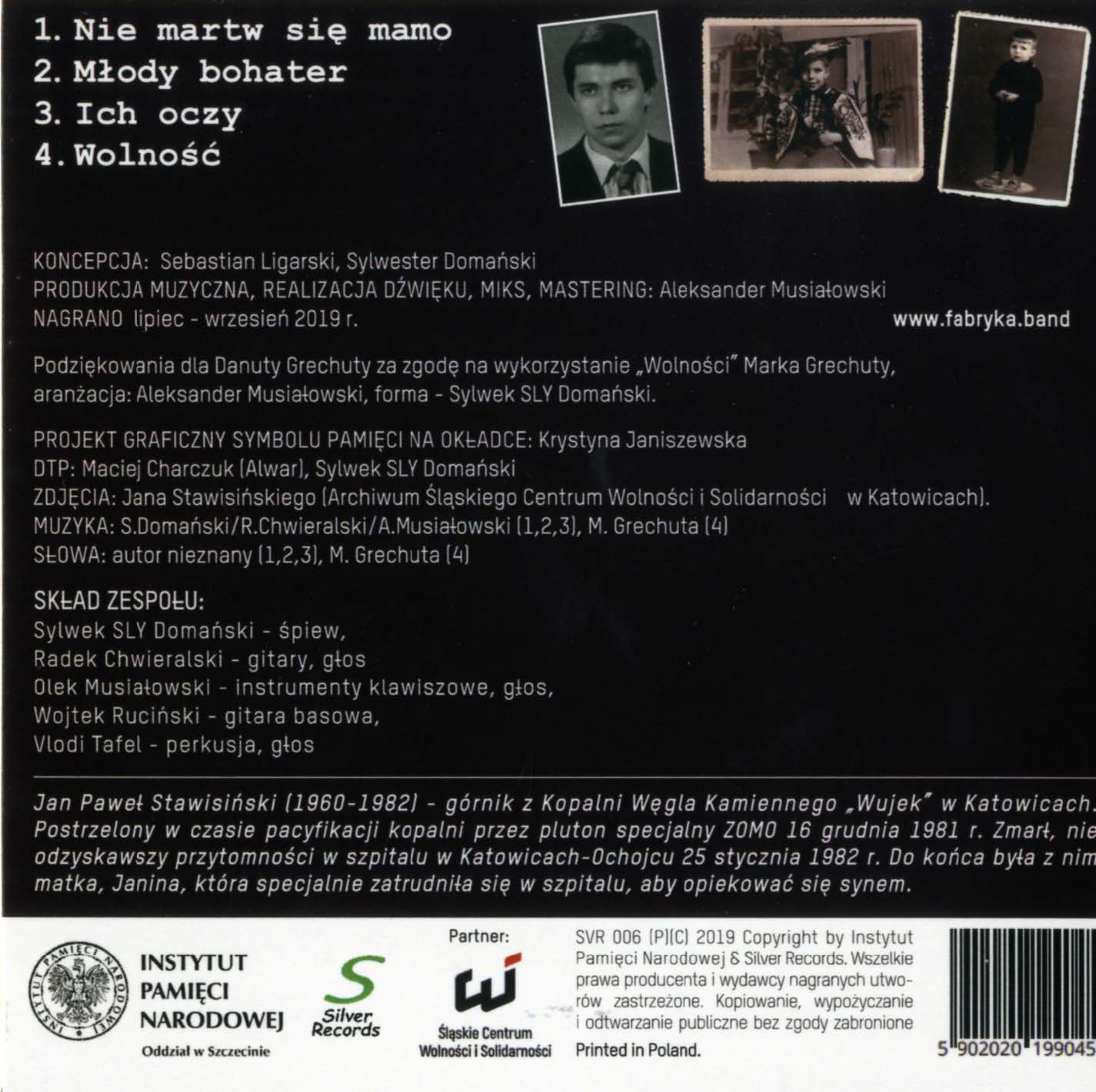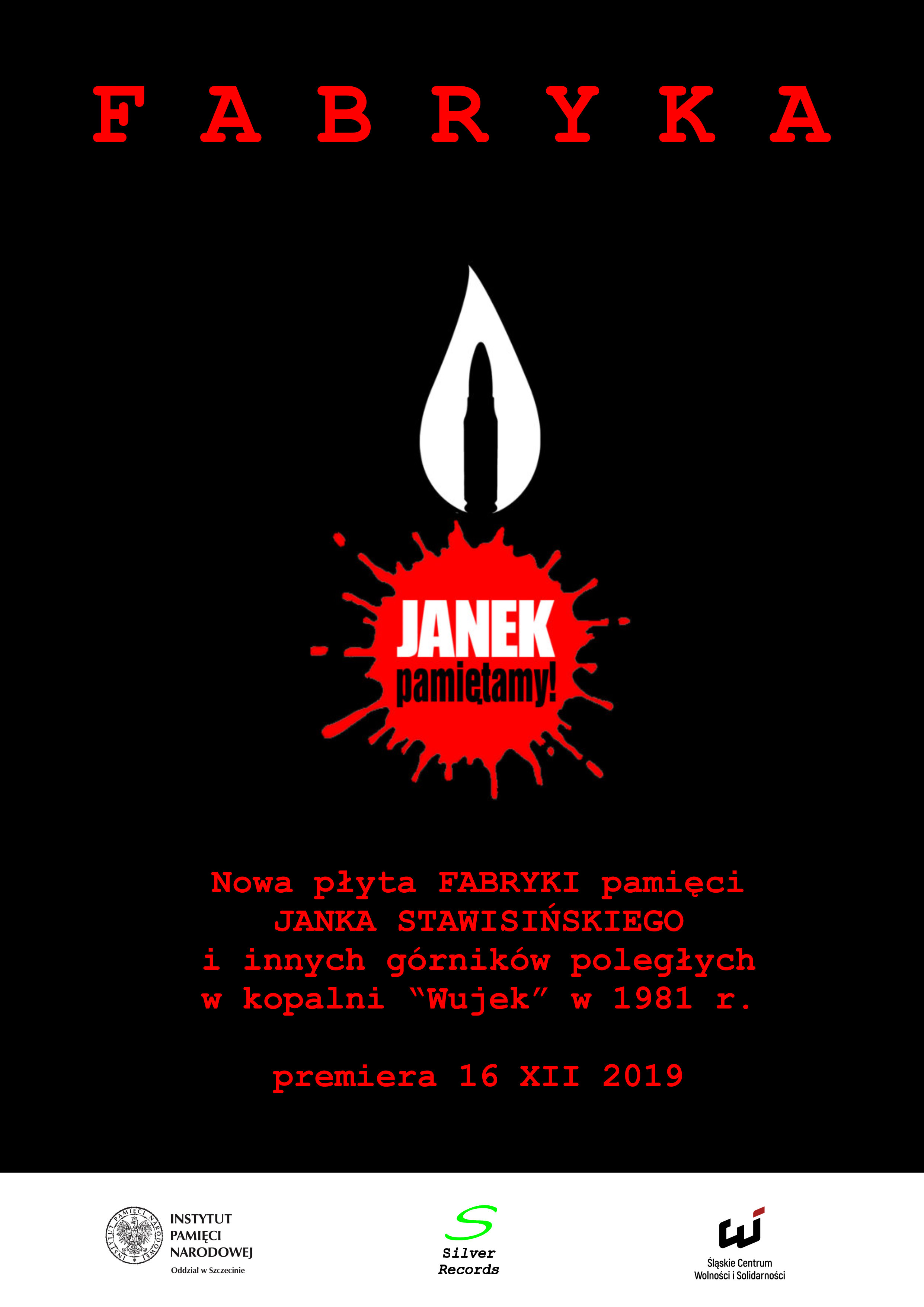 Instytut Pamięci Narodowej Oddział w Szczecinie, Śląskie Centrum Wolności i Solidarności oraz zespół Fabryka przedstawiają wydawnictwo upamiętniające Janka Stawisińskiego (1960 - 1982) - górnika z kopalni „Wujek” – postrzelonego w czasie jej pacyfikacji 16 grudnia 1981 roku. Stawisiński zmarł w szpitalu w Katowicach-Ochojcu 25 stycznia 1982 roku.