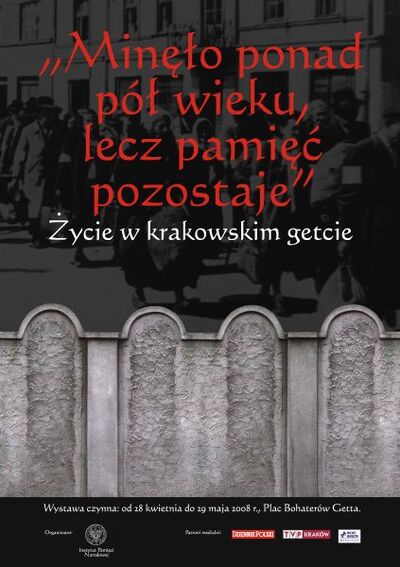Od 28 kwietnia do 29 maja 2008 r. na placu Bohaterów Getta można było oglądać wystawę „Minęło ponad pół wieku, lecz pamięć pozostaje. Życie w krakowskim getcie”, przygotowaną przez Oddział Instytutu Pamięci Narodowej w Krakowie. Wystawę otworzył Marek Lasota, dyrektor krakowskiego oddziału IPN. W otwarciu uczestniczyła Roma Ligocka, autorka książki „Dziewczynka w czerwonym płaszczyku”, której fragmenty spełniają funkcje komentarza literackiego do prezentowanych zdjęć. Wśród zaproszonych gości byli Jego Eminencja ks. kard. Franciszek Macharski, który przybył w towarzystwie ks. infułata Bronisława Fidelusa, Feliks Tuszyński oraz Dieter Exter – konsul Republiki Federalnej Niemiec.