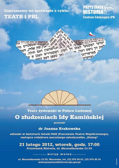 „Teatr żydowski w Polsce Ludowej. O złudzeniach Idy Kamińskiej” – seminarium z historii teatru w PRL – 21 lutego 2012, Warszawa, CE Przystanek Historia, Marszałkowska 21/25