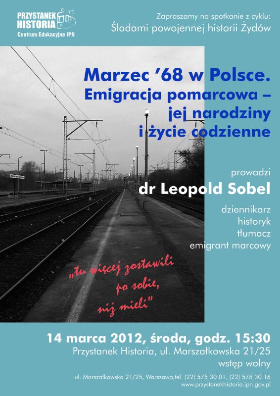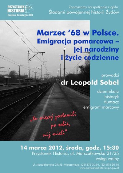 Wykład „Marzec ’68 w Polsce. Emigracja pomarcowa – jej narodziny i życie codzienne” – Warszawa, Centrum Edukacyjne IPN Przystanek Historia, ul. Marszałkowska 21/25, 14 marca