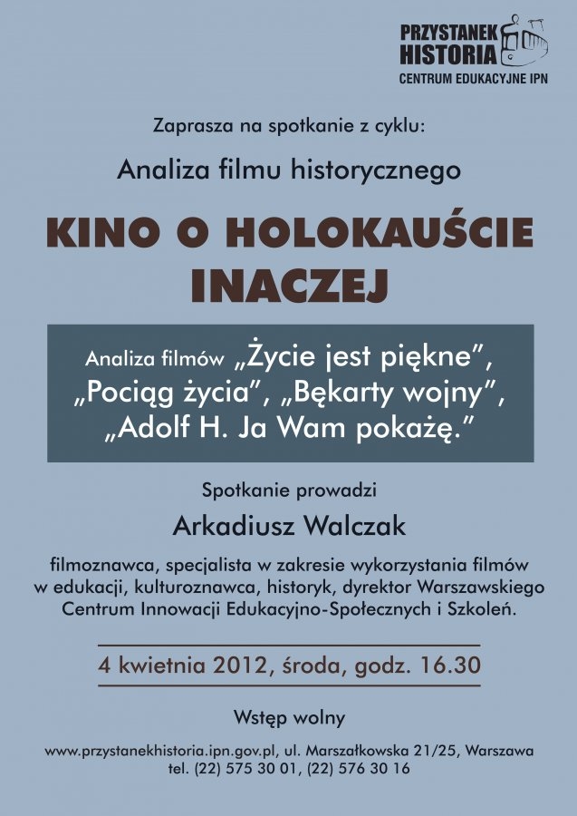 Kino o Holokauście – inaczej. Analiza filmów „Życie jest piękne”, „Pociąg życia”, „Bękarty wojny”, „Adolf H. Ja Wam pokażę” – Warszawa, 4 kwietnia, CE IPN Przystanek Historia, ul. Marszałkowska 21/25