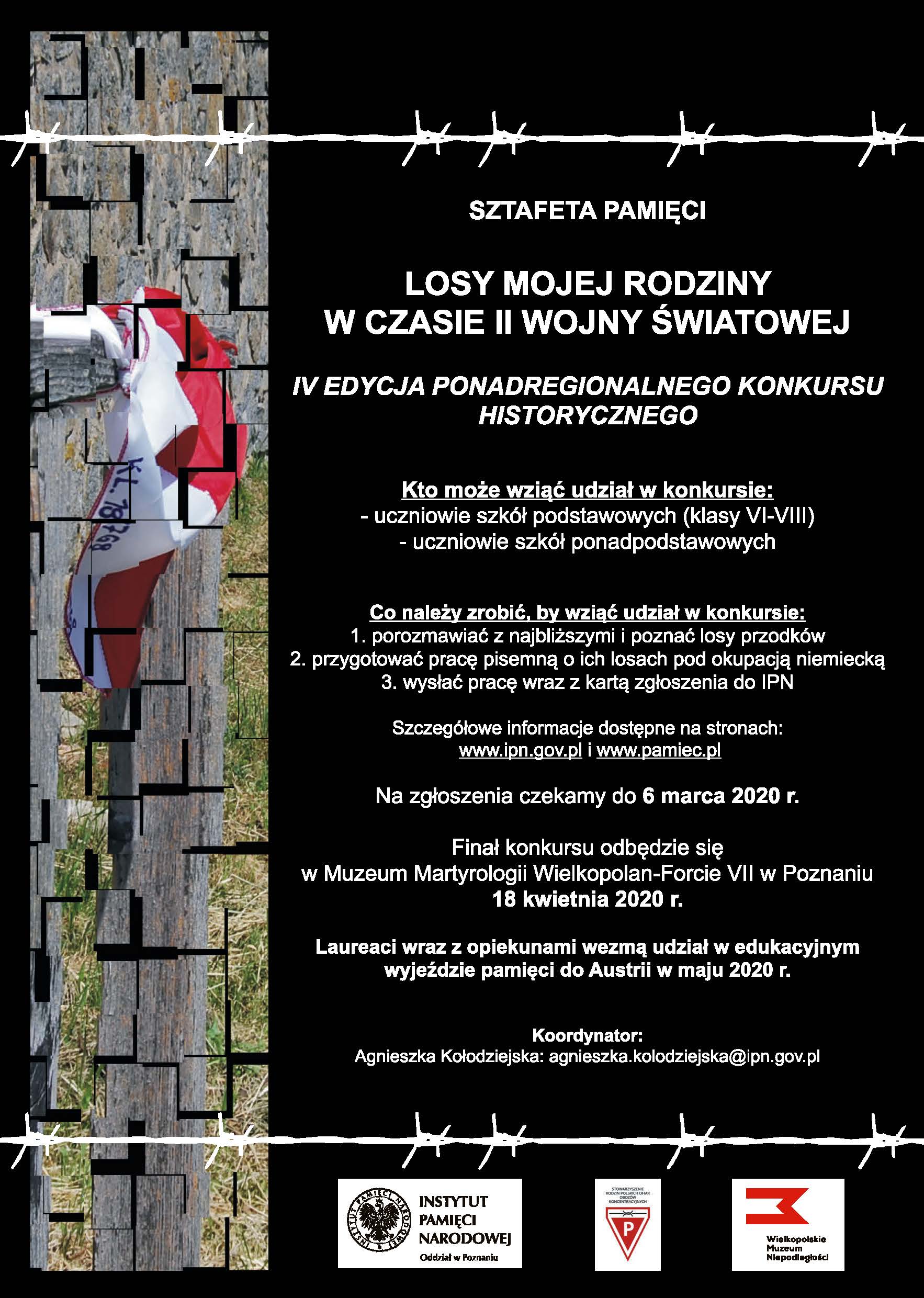 Sztafeta Pamięci – ogłoszenie wyników IV edycji ponadregionalnego konkursu historycznego „Sztafeta Pamięci – losy mojej rodziny w czasie II wojny światowej” w roku szkolnym 2019/2020