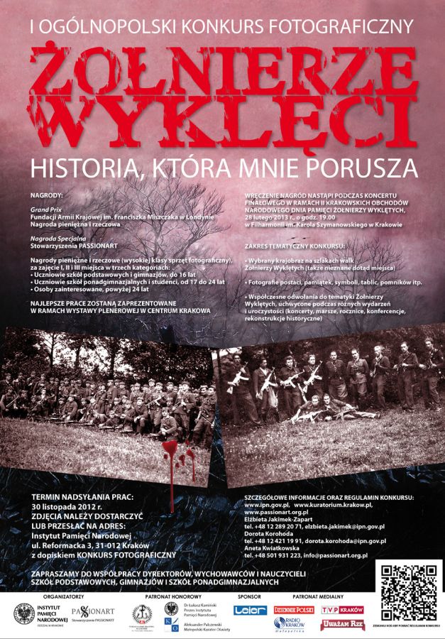 Oddział Instytutu Pamięci Narodowej w Krakowie oraz Stowarzyszenie „Passionart” zapraszają do udziału w I ogólnopolskim konkursie fotograficznym organizowanym przez IPN – „Żołnierze Wyklęci. Historia, która mnie porusza” (regulamin)