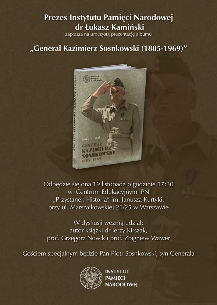 W poniedziałek, 19 listopada 2012, dokładnie w 127 rocznicę urodzin, w Centrum Edukacyjnym IPN w Warszawie odbyła się promocja wydanego przez Instytut albumu Jerzego Kirszaka „Generał Kazimierz Sosnkowski 1895–1969”. Na zaproszenie prezesa IPN na tę uroczystość przyszli historycy, urzędnicy państwowi, zachodni dyplomaci i kombatanci. Gośćmi honorowym byli najmłodszy syn generała Piotr oraz Halina Babińska, od lat przyjaciółka rodziny Sosnkowskich. W dyskusji – prowadzonej przez szefa Biura Edukacji Publicznej IPN dra Andrzeja Zawistowskiego – o postaci generała i wydanym albumie wzięli udział autor albumu oraz historycy, profesorowie Zbigniew Wawer i Grzegorz Nowik.