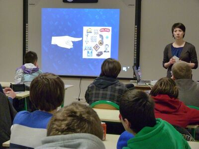 Uczniowie mieli również okazję zagrać w najnowszą grę przygotowaną przez IPN – „Znaj Znak”, której towarzyszyła prezentacja przedstawiająca historię Polski XX w. poprzez symbole.