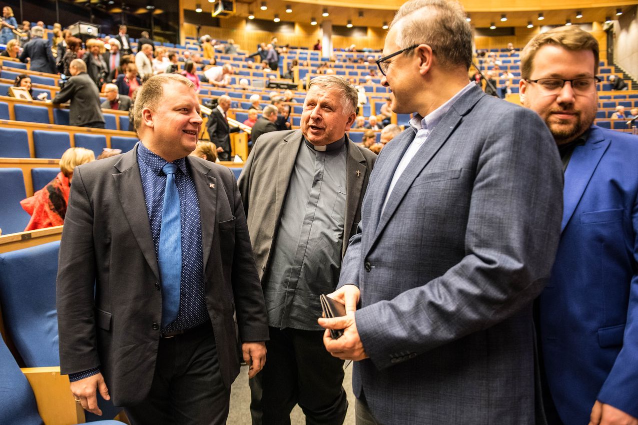 – Rok 2020, setna rocznica naszego wielkiego zwycięstwa nad bolszewikami. Dzięki niemu przez dwie dekady mogliśmy budować wolną Polskę. Jednym z największych osiągnięć tego okresu było wychowanie młodego pokolenia. To Państwa pokolenie – mówił do obecnych w sali kombatantów prezes IPN dr Jarosław Szarek. – To pokolenie miało być zapomniane, ale tak się nie stało. Obudzony pierwszą pielgrzymką Jana Pawła II do ojczyzny duch polski odrodził się. (...) Dzisiaj dzięki Państwu mamy wolną i niepodległą Polskę. Zmagamy się jednak z jednym zadaniem: jaka będzie polska młodzież. Od tego zależy nasza przyszłość. Czy nasza młodzież będzie nadal opierać się na polskich tradycjach? Czy pójdzie pod biało-czerwonym sztandarem? To nasze główne zadanie – dodał prezes IPN.