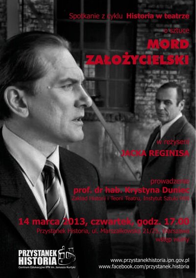 Przystanek Historia – Centrum Edukacyjne IPN im. Janusza Kurtyki zaprasza na spotkanie z cyklu „Historia w teatrze”, prezentującego fragmenty wybranych, zrealizowanych przez Teatr Telewizji spektakli, przedstawiających różne aspekty historii najnowszej. O sztuce „Mord założycielski” w reżyserii Jacka Raginisa opowie prof. dr hab. Krystyna Duniec z Instytutu Sztuki PAN.
