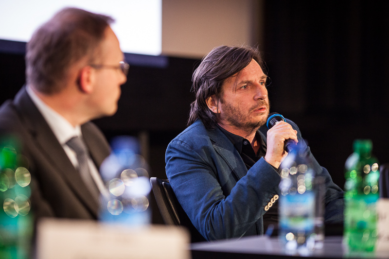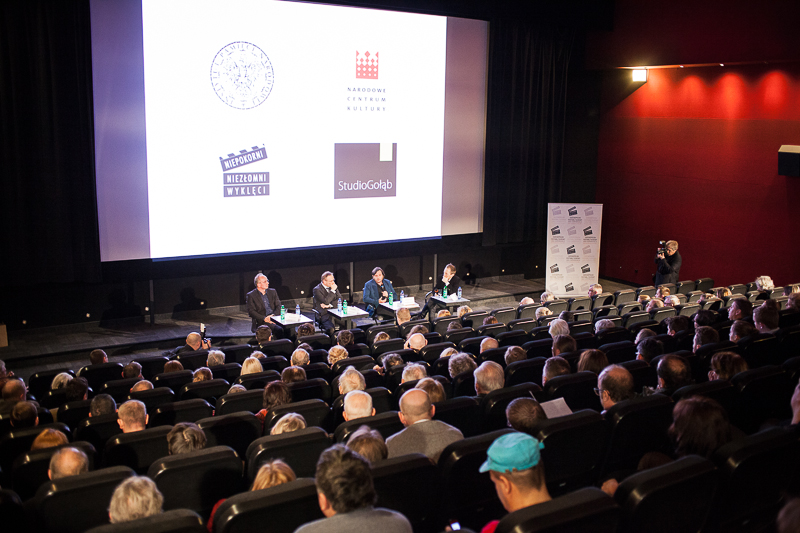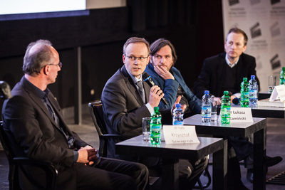 Uczestnicy panelu dyskusyjnego, od lewej: dr hab. Krzysztof Szwagrzyk, dr Łukasz Kamiński, Arkadiusz Gołębiewski i Konrad Piasecki -