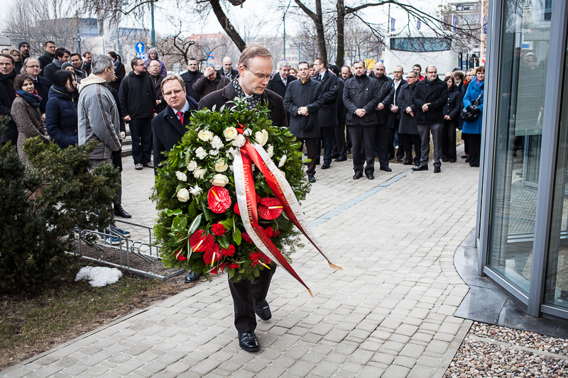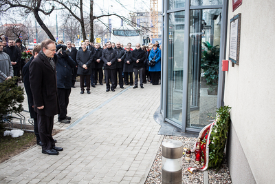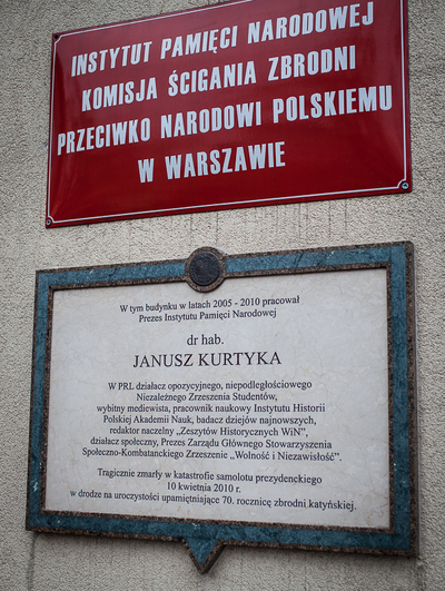 Po mszy Prezes IPN dr Łukasz Kamiński wraz z Dyrektorami Oddziałów Instytutu złożył kwiaty pod tablicą upamiętniającą śp. Janusza Kurtykę, na budynku IPN przy ul. Towarowej 28.