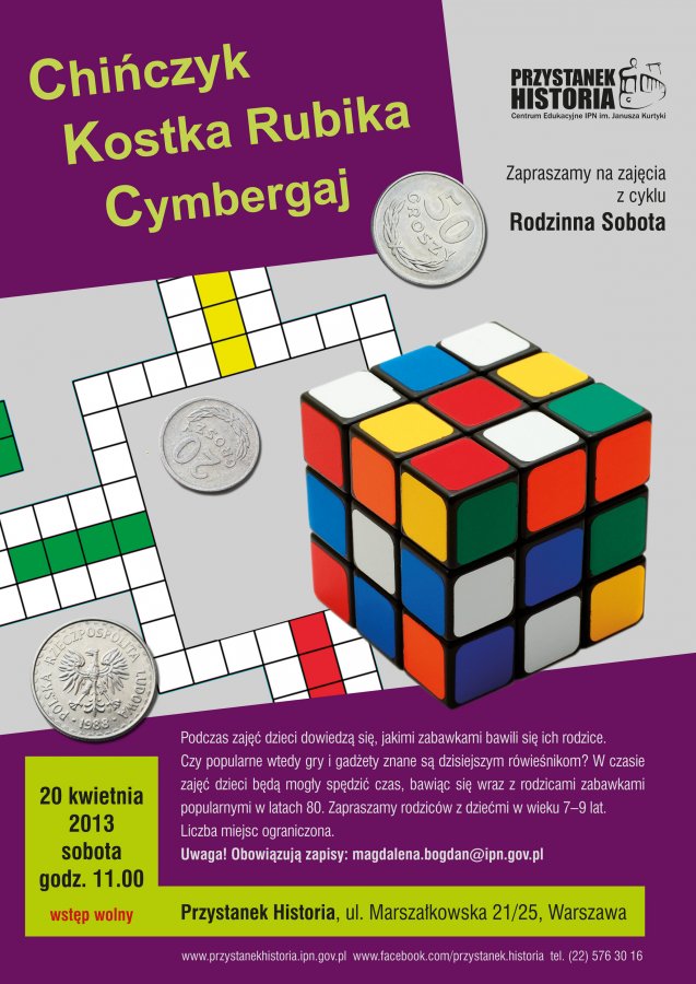 Podczas zajęć dzieci dowiedzą się, jakimi zabawkami bawili się ich rodzice. Czy popularne wtedy gry i gadżety znane są dzisiejszym rówieśnikom? W czasie zajęć dzieci będą mogły spędzić czas, bawiąc się wraz z rodzicami zabawkami popularnymi w latach 80. Zapraszamy rodziców z dziećmi w wieku 7-9 lat. Liczba miejsc ograniczona.