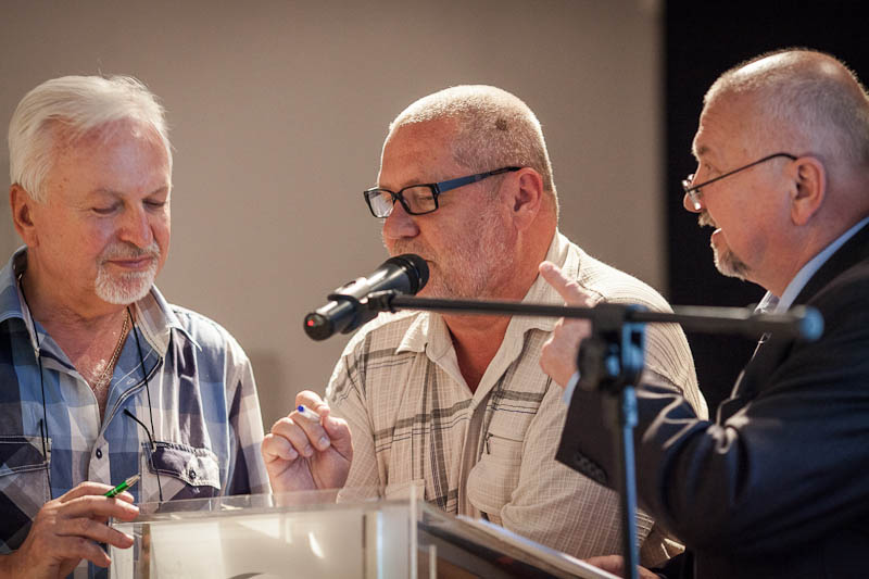 Od lewej: Andrzej Sobieraj, Wojciech Borowik i Andrzej Rozpłochowski prezentują szczegóły ustawy „o statusie Weterana Opozycji Antykomunistycznej i Korpusie Weterana Opozycji Antykomunistycznej wobec dyktatury komunistycznej PRL w latach 1971–1989"