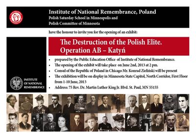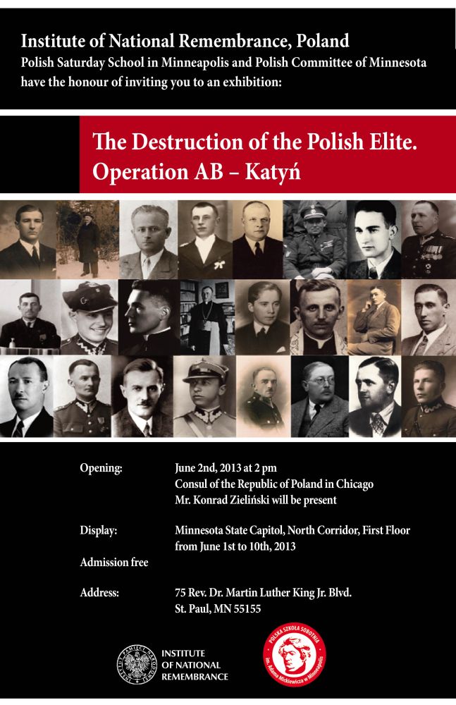 Wystawa „Zagłada polskich elit. Akcja AB – Katyń” w St. Paul (USA) – 1–10 czerwca 2013