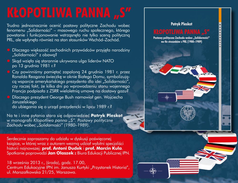 Spotkanie odbędzie się 18 września 2013 r., (środa) o godz. 17.00 w Centrum Edukacyjnym IPN im. Janusza Kurtyki „Przystanek Historia”, ul. Marszałkowska 21/25, Warszawa.