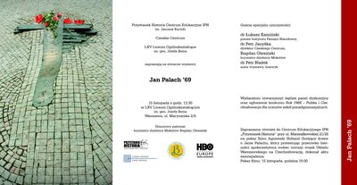Tego samego dnia o godz. 13.30 w LXV Liceum Ogólnokształcącym im. Józefa Bema, przy ul. Marynarskiej 2/6, odbędzie się uroczyste otwarcie wystawy „Jan Palach '69", którego dokonają Łukasz Kamiński, prezes Instytutu Pamięci Narodowej, Petr Janyška, dyrektor Czeskiego Centrum, Bogdan Olesiński, burmistrz dzielnicy Mokotów, oraz autor wystawy – Petr Blažek. Wydarzeniu towarzyszyć będzie panel dyskusyjny oraz ogłoszenie konkursu dla uczniów szkół ponadgimnazjalnych „Rok 1968 – Polska i Czechosłowacja".