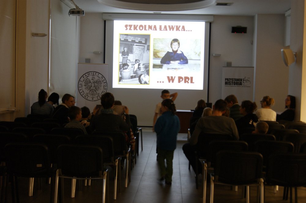 Tym razem tematem była szkoła w PRL. Dzieci dowiedziały się, jak wyglądały tarcze i fartuszki, co ich rodzice jedli na drugie śniadanie oraz co nosili w szkolnej teczce. Następnie wzięły udział w zabawach, które pozwoliły im lepiej poznać realia PRL-owskiej szkoły – lepiły Plastusie, robiły tarcze szkolne i zobaczyły, jak działają liczydła.