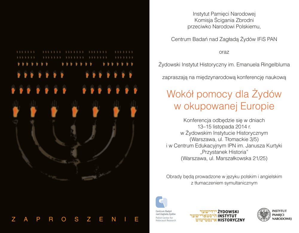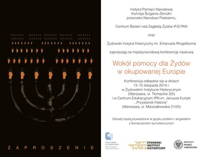 Konferencja odbędzie się w Warszawie w dniach 13–15 listopada 2014 r. w Centrum Edukacyjnym IPN im. Janusza Kurtyki „Przystanek Historia" (ul. Marszałkowska 21/25) oraz w Żydowskim Instytucie Historycznym (ul. Tłomackie 3/5).