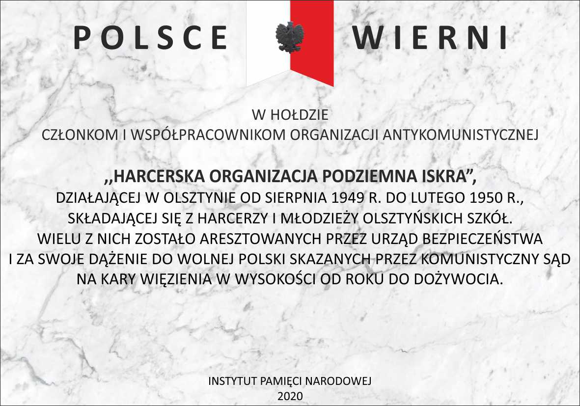 Harcerska Organizacja Podziemna Iskra – organizacja działająca w Olsztynie od sierpnia 1949 r. do lutego 1950 r., składała się z harcerzy i młodzieży olsztyńskich szkół. Wielu z nich zostało aresztowanych przez Urząd Bezpieczeństwa i za swoje dążenie do wolnej Polski skazanych przez koministyczny sąd na kary więzienia od roku do dożywocia.