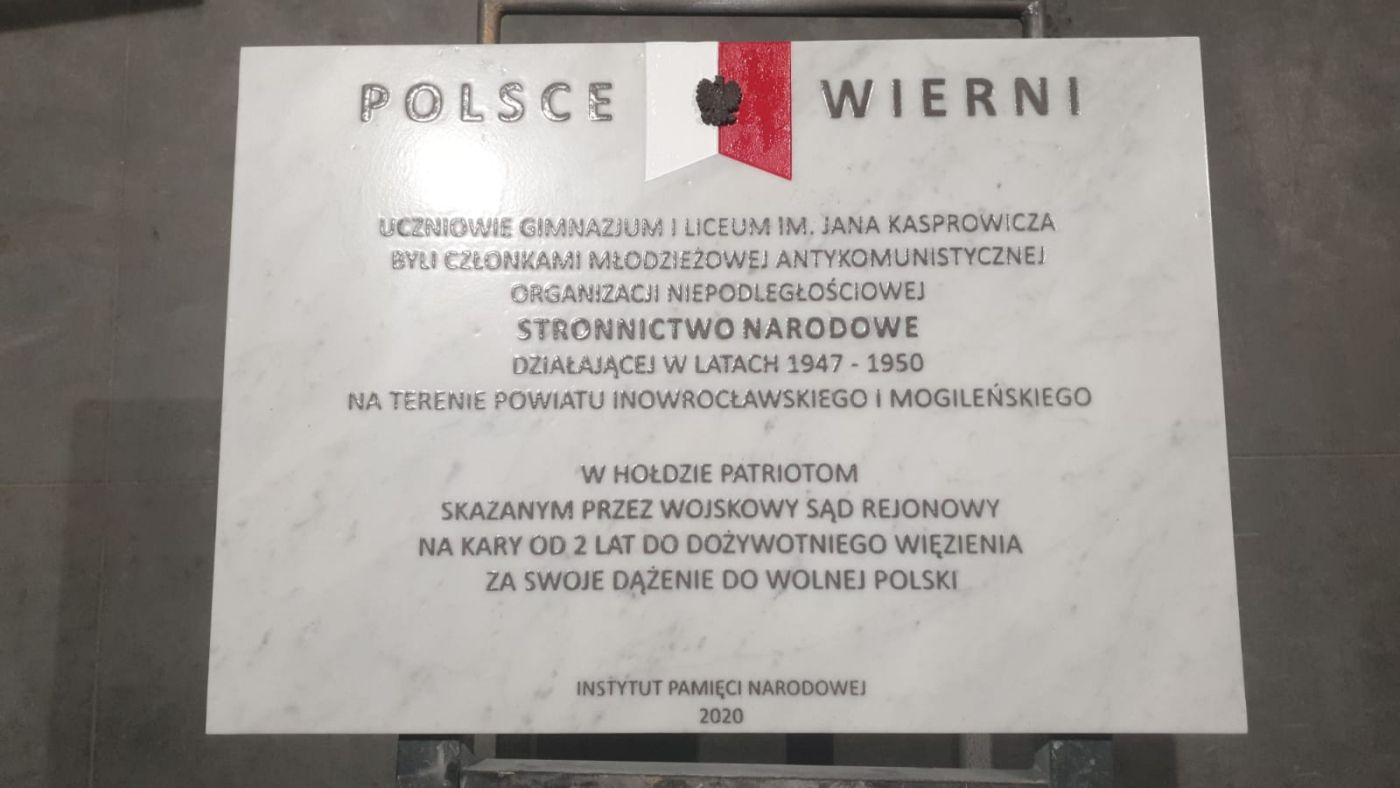 2 marca 2020 – w budynku I LO w Inowrocławiu została odsłonięta tablica poświęcona młodzieżowej organizacji niepodległościowej „Stronnictwo Narodowe”. Tego samego dnia na ścianie obok odsłonięto tablicę ku czci nauczycieli i wychowanków szkoły pomordowanych w czasie II wojny światowej.