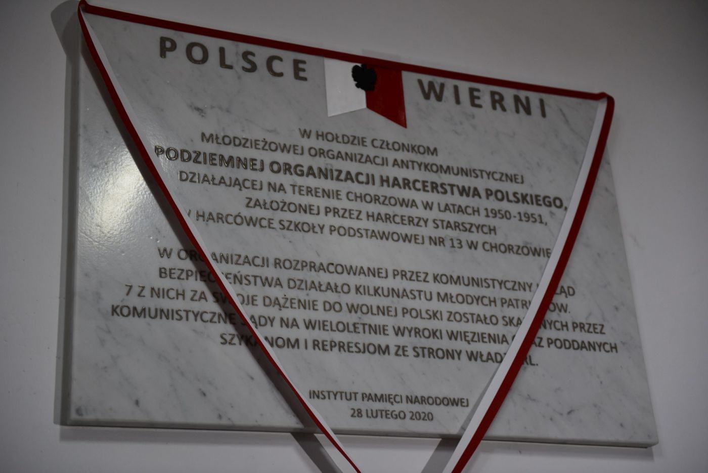28 lutego 2020 odsłonięcie tablicy upamiętniającej członków Podziemnej Organizacji Harcerstwa Polskiego w Szkole Podstawowej nr 13 im. Tadeusza Kościuszki w Chorzowie (ul. W. Styczyńskiego 32).