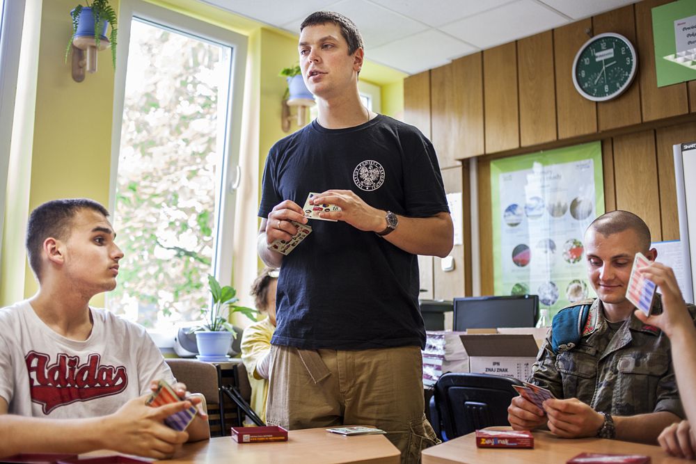 Łącznie Instytut przekazał szkole około 500 gier. Jednym z naszych instruktorów w czasie tej akcji był twórca IPN-owskich gier, Karol Madaj z BEP (widoczny na fotografii).
