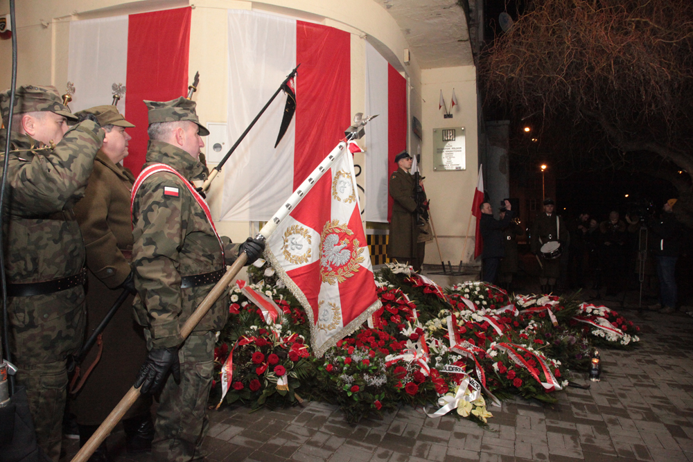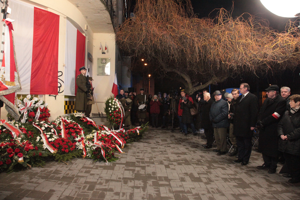 Przed tablicą pamiątkową poświęconą ofiarom sowieckich represji przetrzymywanych w tym budynku wygłoszono okolicznościowe przemówienia. Po wspólnej modlitwie uczestnicy obchodów złożyli kwiaty. Uroczystości, w związku z obchodami Narodowego Dnia Pamięci Żołnierzy Wyklętych, zorganizowała Fundacja Willa Jasny Dom oraz Urząd do Spraw Kombatantów i Osób Represjonowanych.