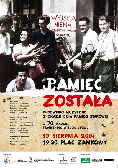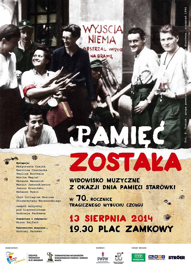 Zapraszamy na widowisko muzyczne „Pamięć została", które odbędzie się 13 sierpnia 2014 o godz. 19:30 na Placu Zamkowym na Starym Mieście w Warszawie - w ramach obchodów Dnia Pamięci Starówki w 70. rocznicę tragicznego wybuchu czołgu.