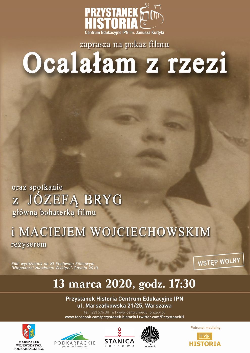Przystanek Historia Centrum Edukacyjne IPN im. Janusza Kurtyki zaprasza na pokaz filmu Macieja Wojciechowskiego Ocalałam z rzezi i spotkanie z jego bohaterką – panią Józefą Bryg.