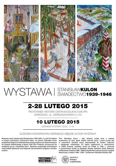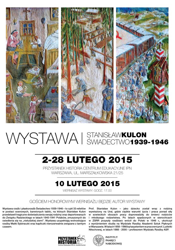 W rocznicę pierwszej deportacji ludności polskiej do ZSRR, 10 lutego 2015, odbył się wernisaż wystawy płaskorzeźb i rzeźb prof. Stanisława Kulona „Świadectwo 1939–1946”. Gościem honorowym był autor wystawy – Stanisław Kulon, rzeźbiarz, wieloletni wykładowca Wydziału Rzeźby Akademii Sztuk Pięknych w Warszawie.
