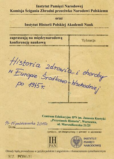 Instytut Pamięci Narodowej oraz Instytut Historii Polskiej Akademii Nauk zapraszają do udziału w międzynarodowej konferencji naukowej „Historia zdrowia i choroby w Europie Środkowo-Wschodniej po 1945 r.”, która odbędzie się w Warszawie w dniach 14–15 października 2015 r.