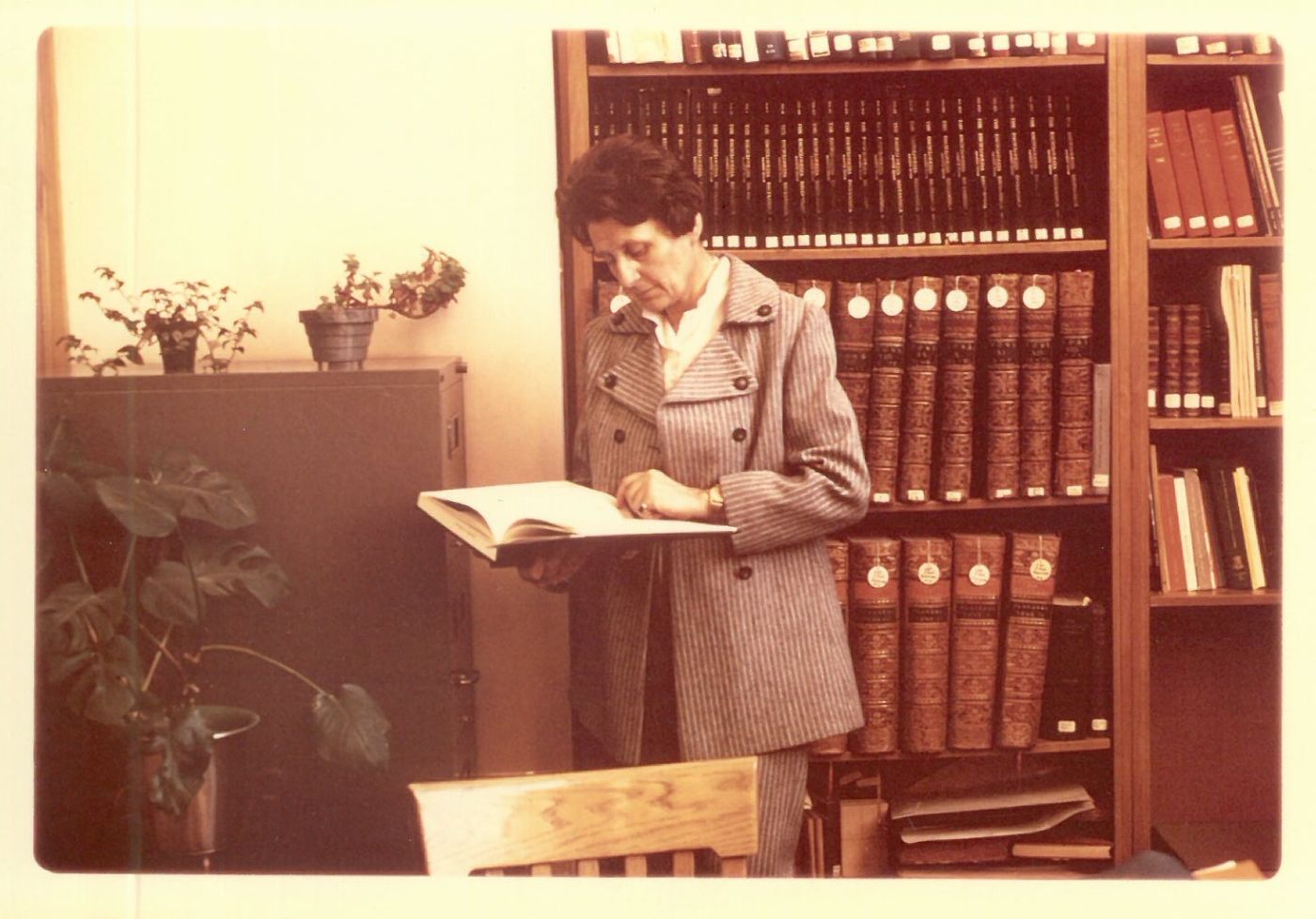 Anna Poray-Wybranowska podczas pracy bibliotece (fot. Archiwum IPN)