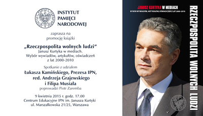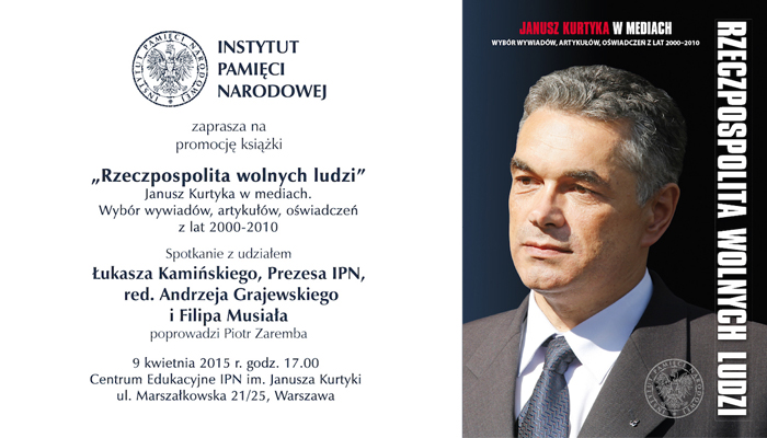 W przeddzień piątej rocznicy katastrofy smoleńskiej w Centrum Edukacyjnym IPN Przystanek Historia odbyło się spotkanie poświęcone zbiorowi wywiadów z byłym prezesem IPN profesorem Januszem Kurtyką, jedną z ofiar katastrofy prezydenckiego samolotu. Książka, zredagowana przez Andrzeja Arseniuka i Filipa Musiała, oprócz wywiadów i wystąpień Kurtyki zawiera także szkice Musiała o prezesie IPN jako człowieku, historyku, szefie, państwowcu, a najbardziej jako wolnym obywatelu Rzeczypospolitej, którego pragnieniem było, by wolni mogli się poczuć także inni Polacy.